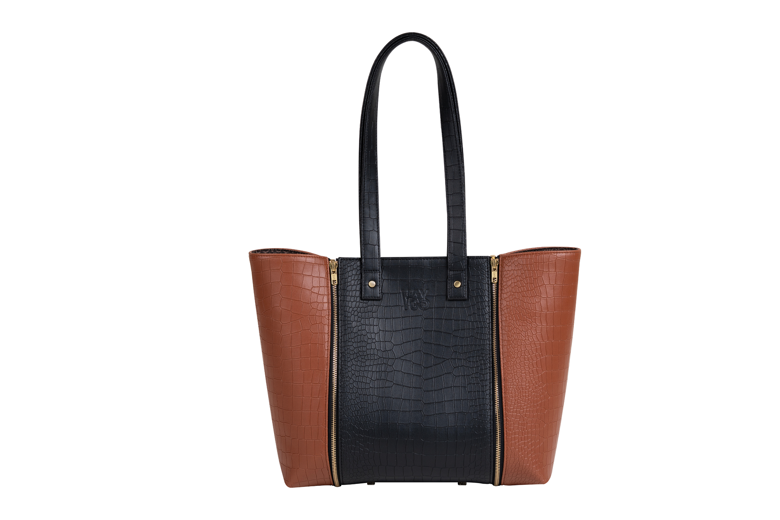 GO TOTE – Jet Black Croco Core with Camel Croco Wings