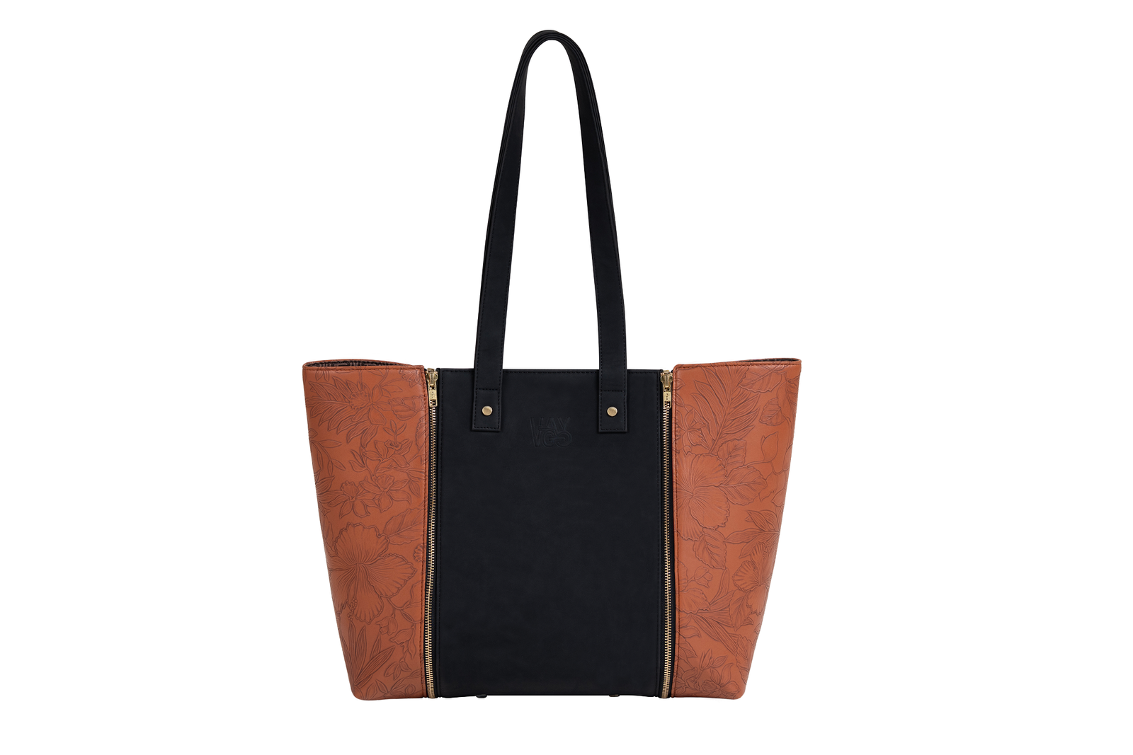 GO TOTE – Jet Black Suede Core with Camel Textured Wings